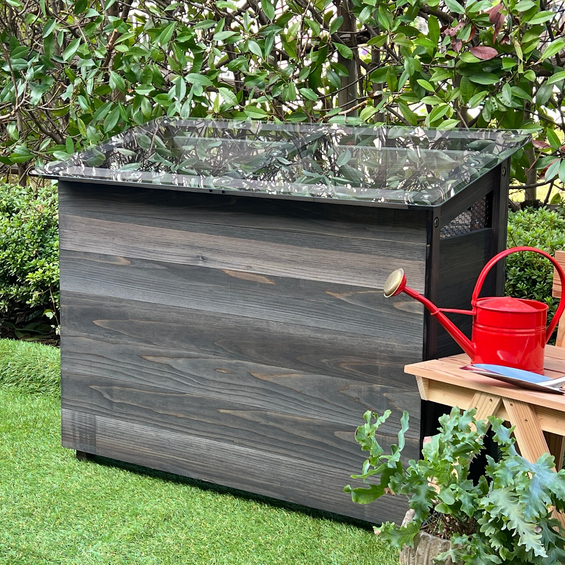 ●土をいれて使用するため、底に近いほうは経年劣化していきます。なるべく日当りが良く、風通しが良い場所でお使いください。 ●高台や屋上など風の強い場所では、強風の日にはふたが風にあおられることがございます。必要に応じて、同梱のあおり止めをとりつけてご使用ください。 ●資源保護のため、梱包は最小限にしております。リユース資材も使っておりますのでご了承ください。 |